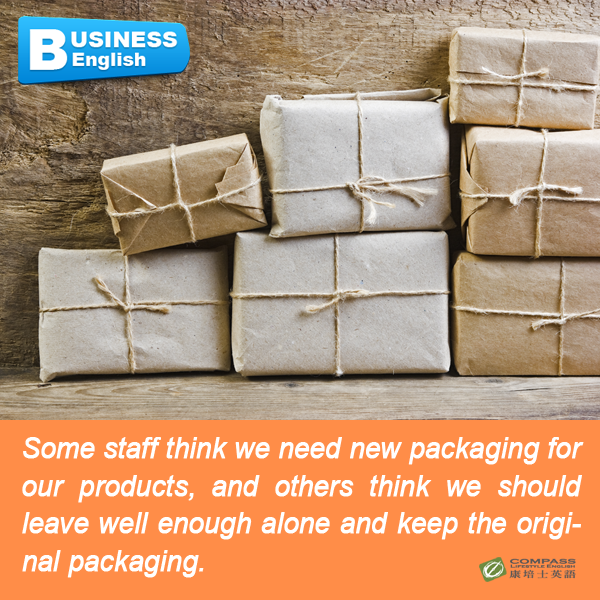 Some staff think we need new packaging for our products, and others think we should leave well enough alone and keep the original packaging.